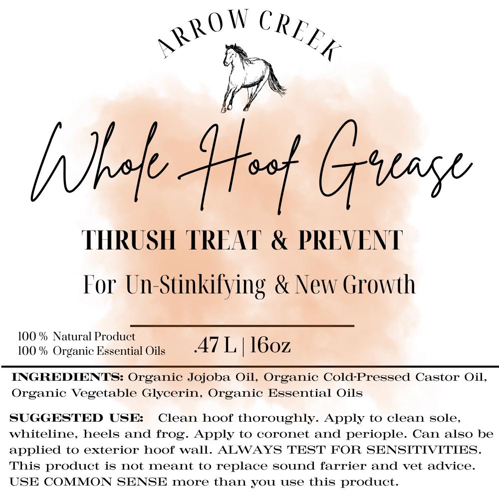 I skip the mystery ingredients and go straight for the good stuff—clean, all-natural bases + certified organic essential oils that are specifically chosen to help fight off and prevent thrush while keeping the hoof environment balanced and healthy. I use Plant Therapy Certified Organic Essential Oils—I know everyone is preaching DoTERRA, and while they seem fine, they are a MLM and I just dont trust a company that you have to buy into to have access to their oils and information.